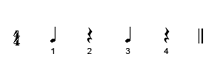Description: 4 measures using different kinds of rests