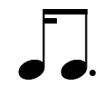 You can also add a dot to a quarter note. Half of a quarter note is an eighth note. So, a dotted quarter note would be worth one and a half beats. An dotted eighth note is worth an eighth note (half a beat) plus a sixteenth note (worth a quarter of a beat) for three quarters of a beat. Here is a dotted quarter note and a dotted eighth note: